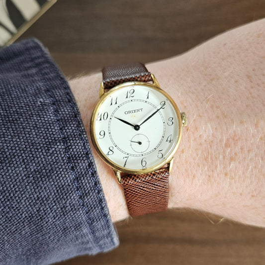 Vintage Orient Manual Wind Mens Dress Watch Leather Band - c.1970