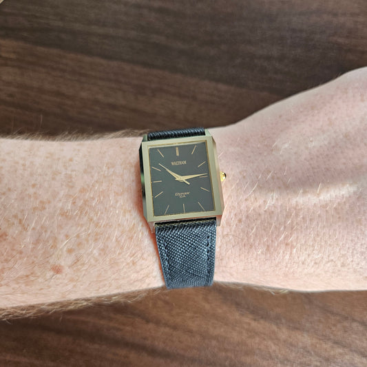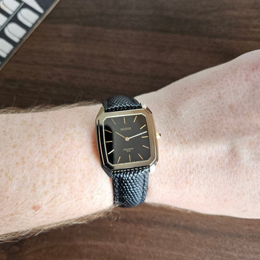 Vintage Waltham Dynax C.A. Ceramic Tank Style Dress Watch - Black Dial - 1980s