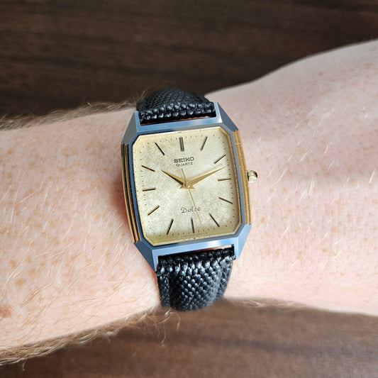 Vintage Seiko Dolce Tank Style Dress Mens Watch Textured Dial - 6030-5390 - 1982