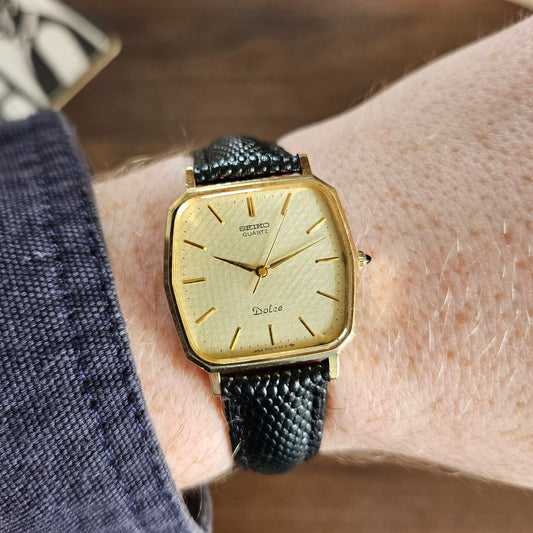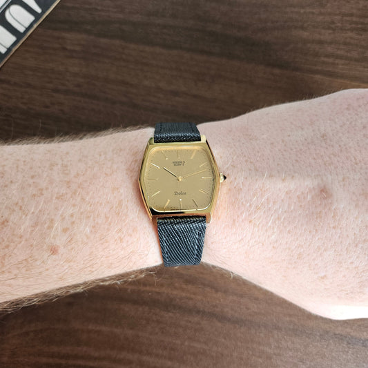 Vintage Seiko Dolce Gold Dial NSAG Hard Alloy Dress Watch - 6030-5480 - 1982