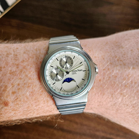 Seven Stars Custom Lights Moonphase Mens Calendar Watch - 1990s