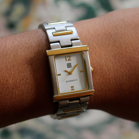 Vintage Givenchy Womens Ladies Two Tone Square Swiss Tank Style Watch - 1990s