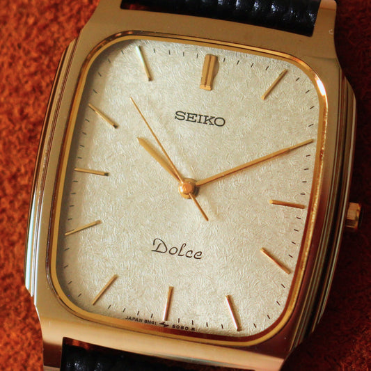 Vintage Seiko Dolce Gold Square Dress Watch – 5931-5490 – 1982