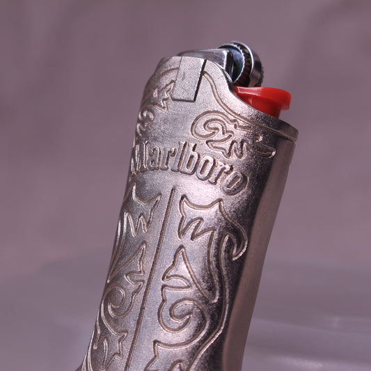 Vintage Marlboro Cowboy Boot Metal Lighter Case Mini Bic Holder