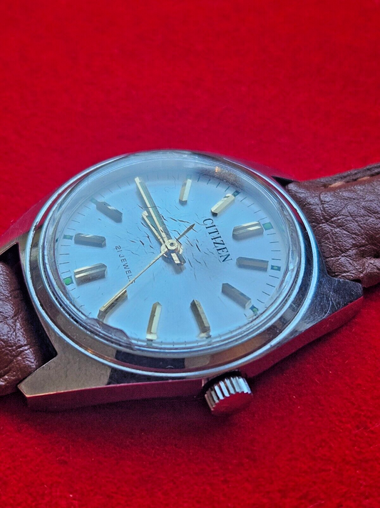 Vintage Citizen Automatic Womens Watch Silver Case Leather Strap - Fully Working