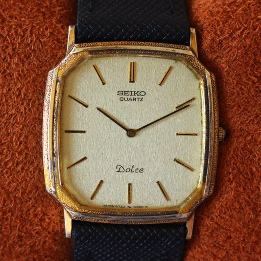 Vintage Seiko Dolce Dress Watch Art Deco Gold Case & Dial - 1982 - 6730-5190
