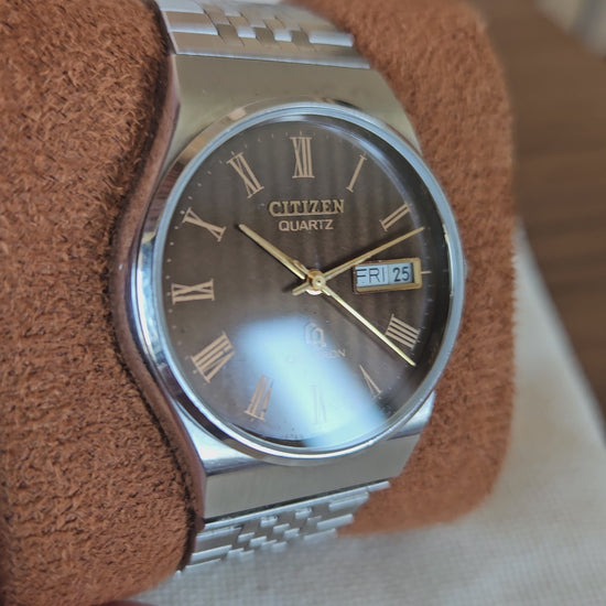 Vintage Citizen Crystron Quartz Brown Roman Dial Striped Dial - 1979 - 4-730909
