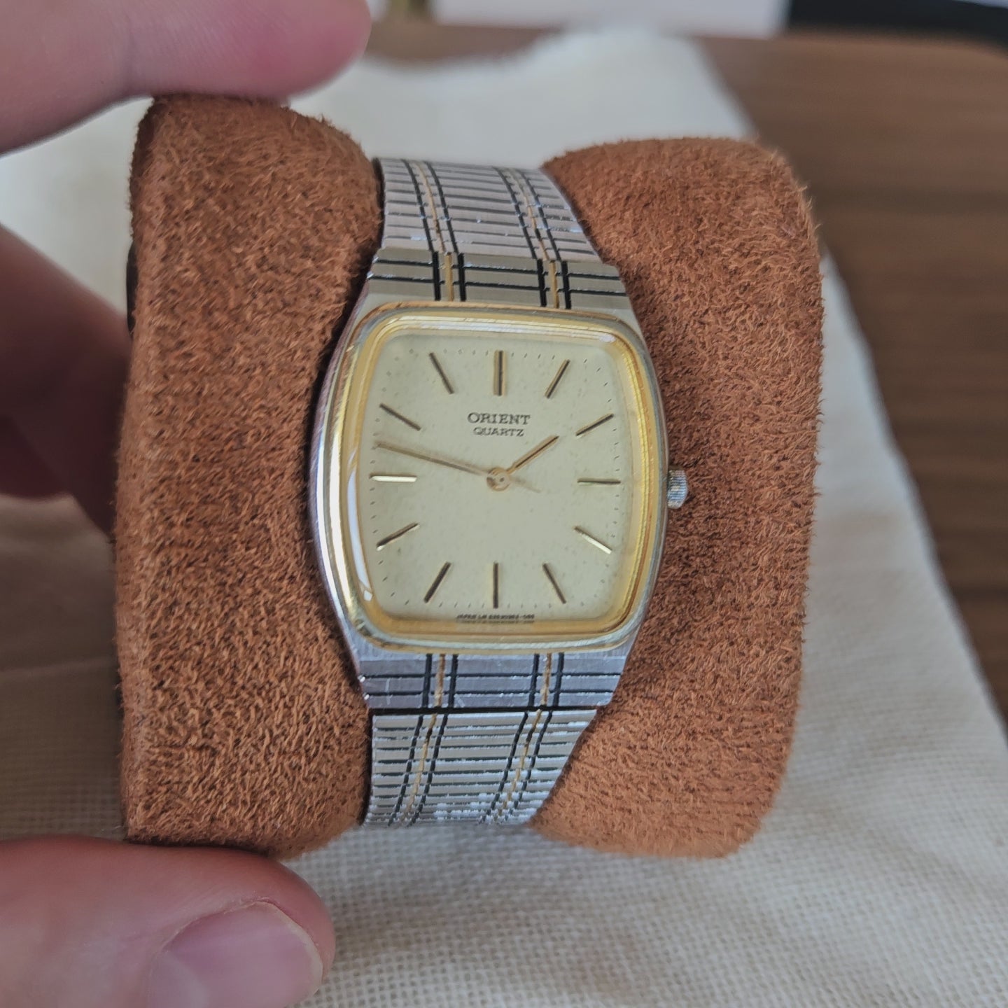 A lovely and stylish women's dress watch from a respected Japanese brand. With its classic 80s two-tone styling, beautiful textured dial, and original bracelet, this Orient is a perfect choice for a reliable and elegant everyday vintage piece.