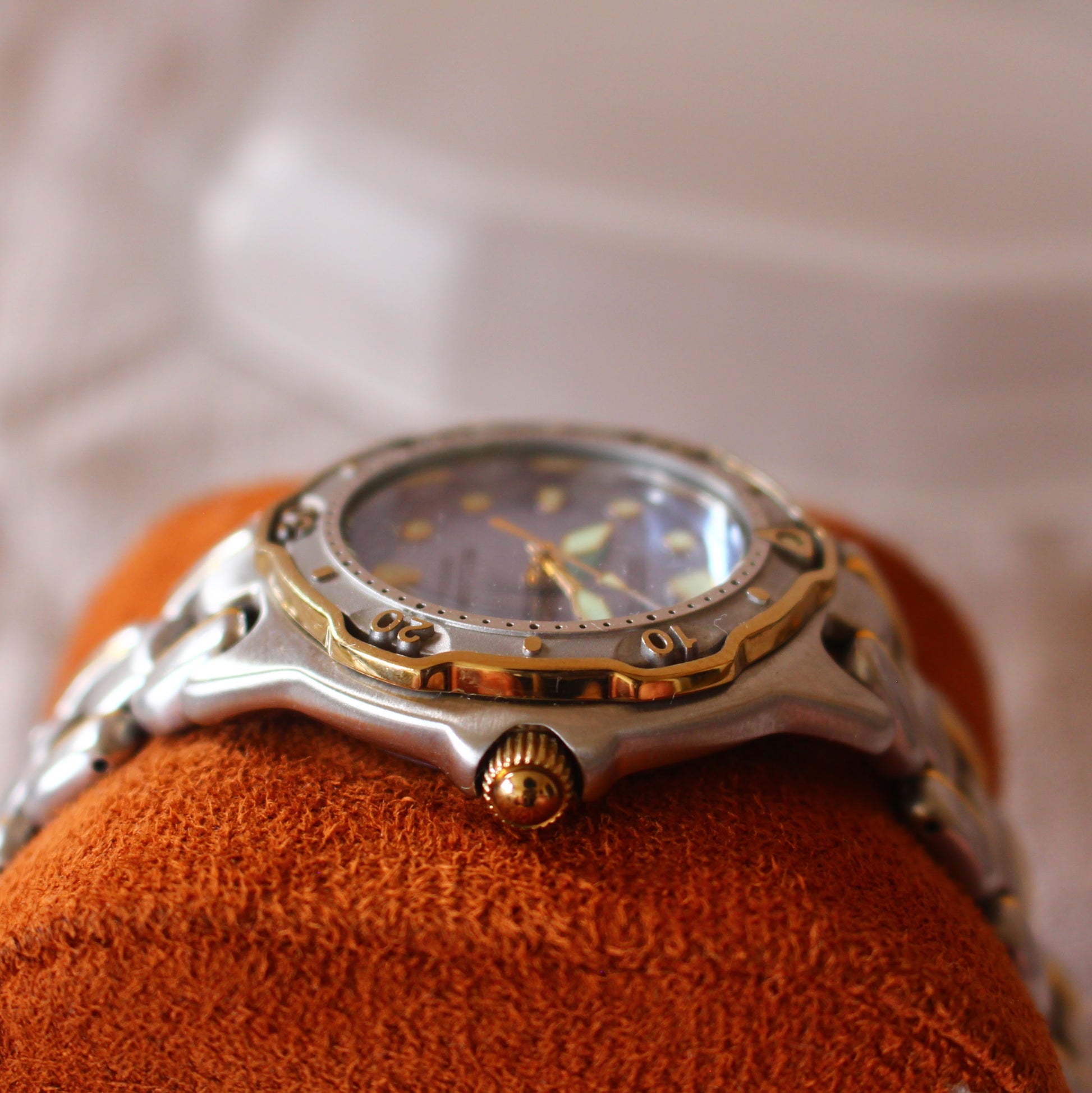The watch is presented in great overall condition. The crystal is in great shape with no major marks. The unique mother-of-pearl style dial is in great, clean condition. The two-tone case and original bracelet show signs of wear consistent with age, such as light scratches. The watch has been tested and is both fully functioning correctly and keeping accurate time, with the bezel rotating and crown screwing down as they should. Please review the photos for a detailed look at its condition.