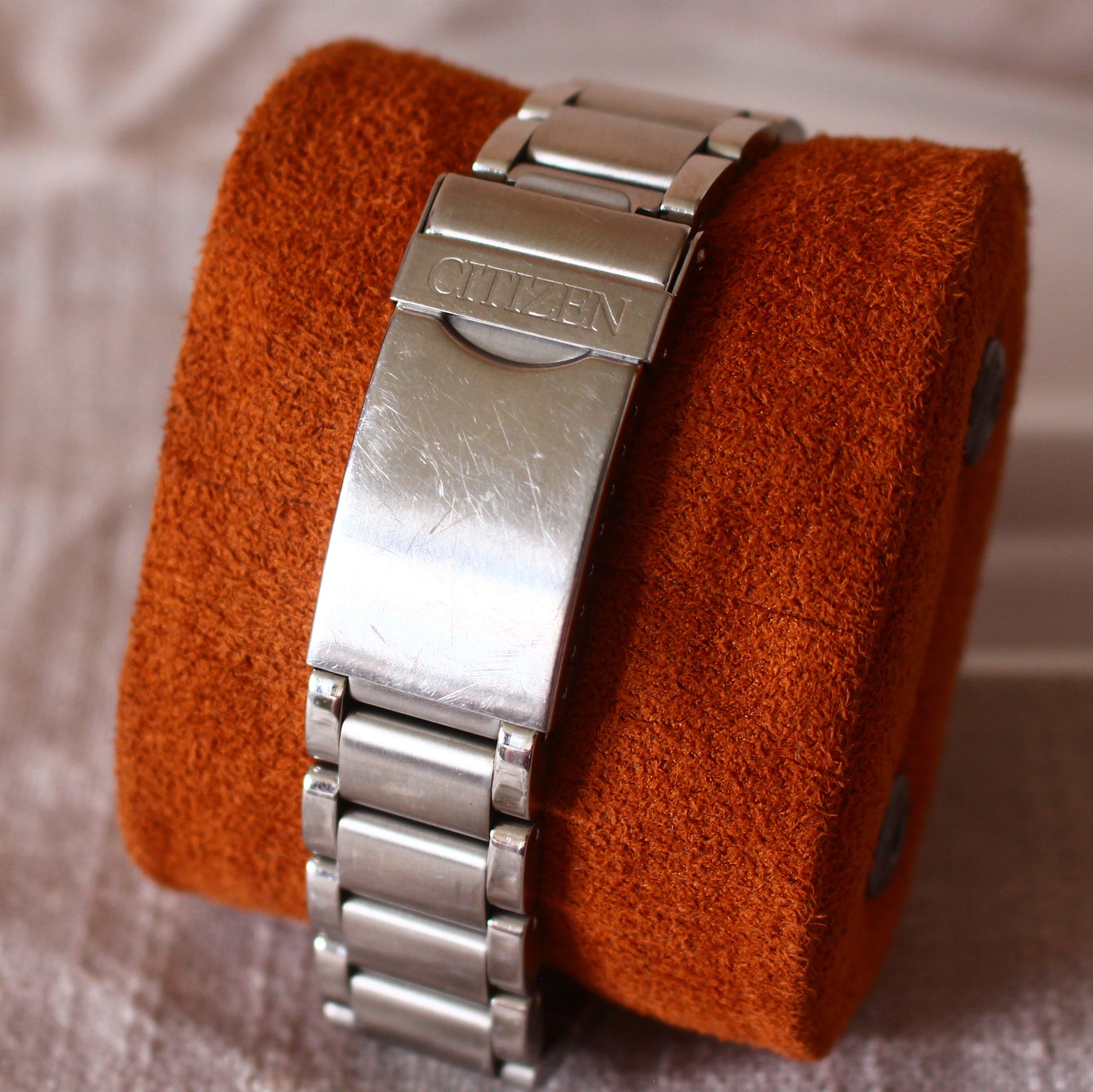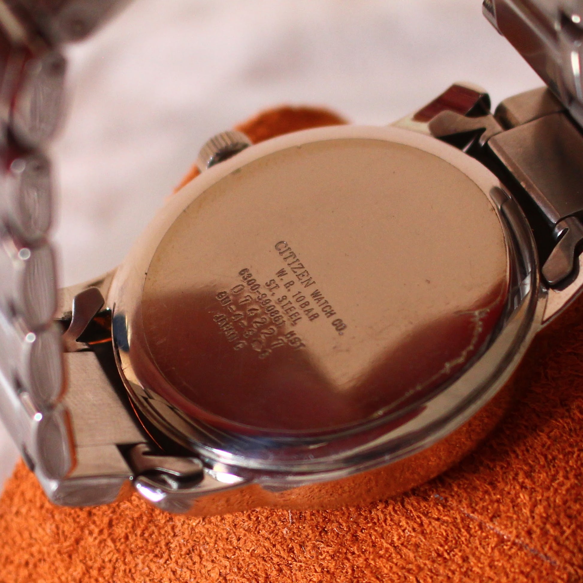 The stainless steel case has a solid, slightly chunky profile that feels very “Citizen” of the era, paired with the original bracelet which suits the watch perfectly and keeps the whole package period-correct. Inside is Citizen’s reliable quartz calendar movement, making this an extremely practical vintage watch despite the complication-heavy dial.