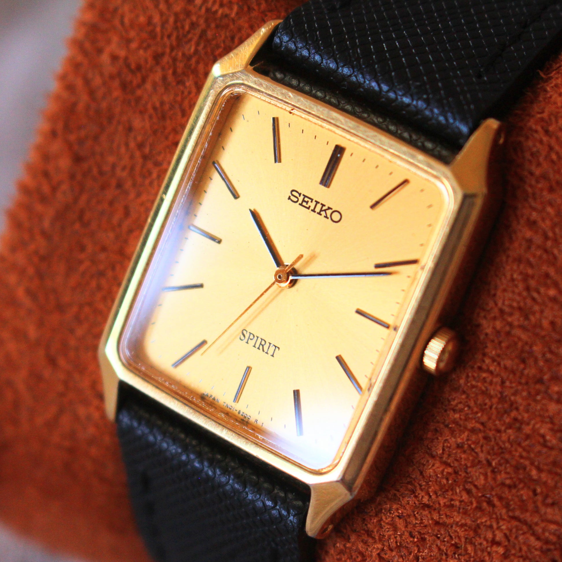 Retro Seiko Spirit JDM Tank Mens Rectangular Watch - 7N01-5180 - Made 2000