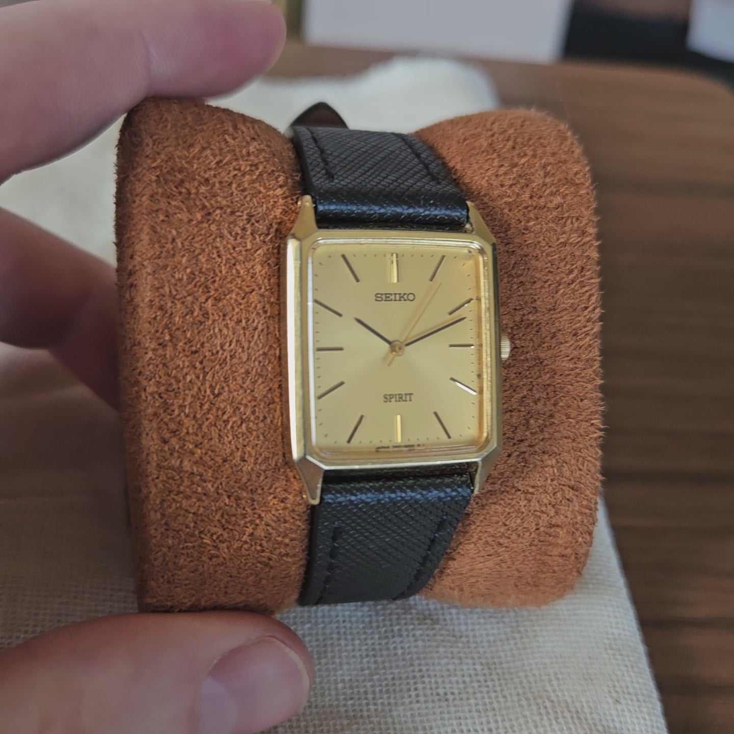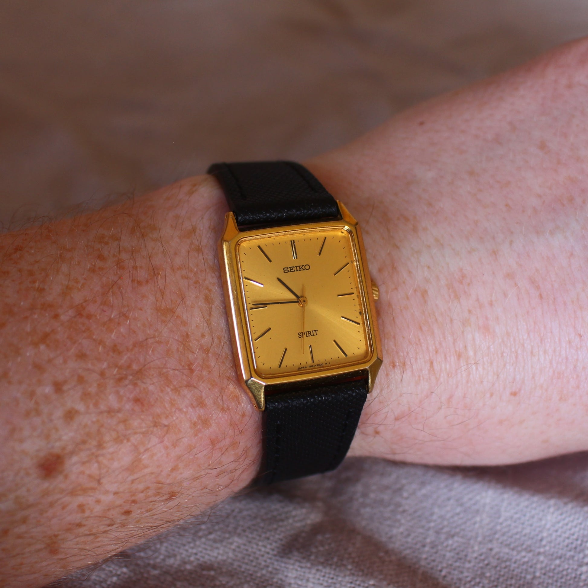 A sophisticated and versatile Seiko Spirit from 2000, offering a timeless tank-style design and presented in great, ready-to-wear condition on a new strap.