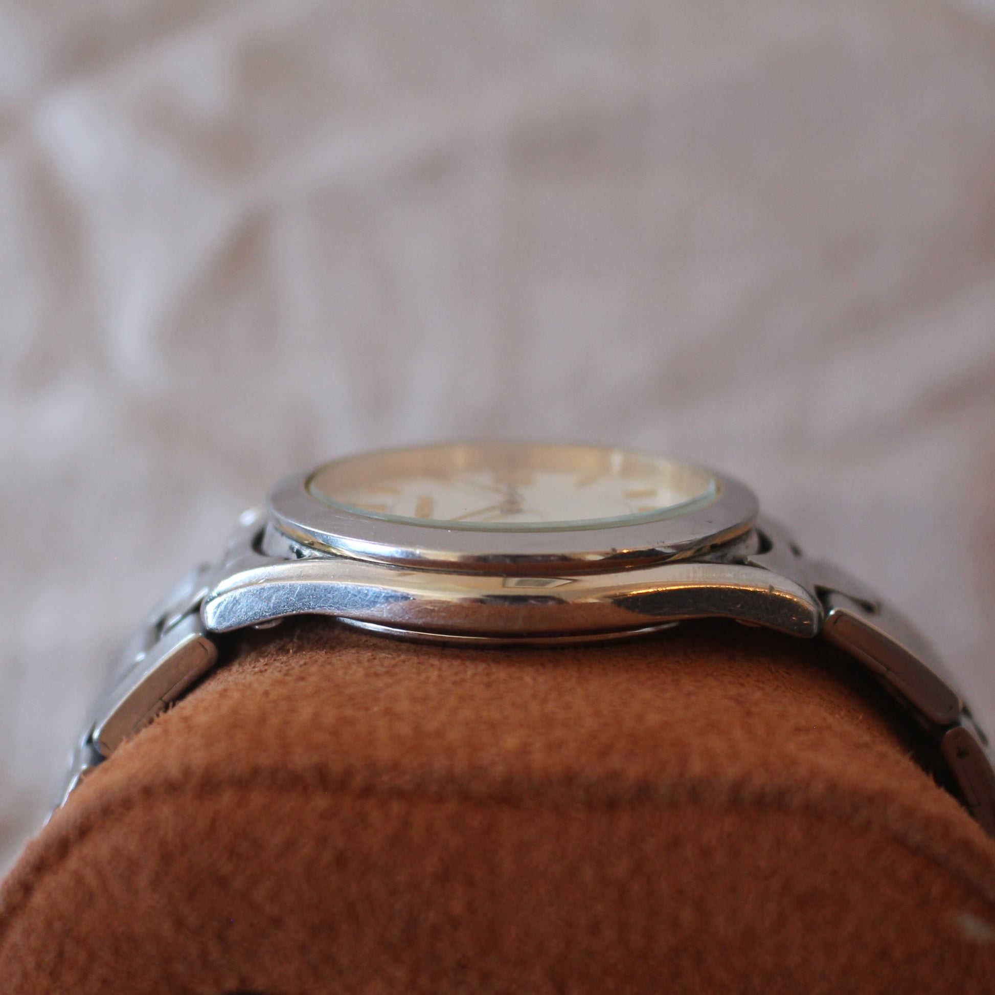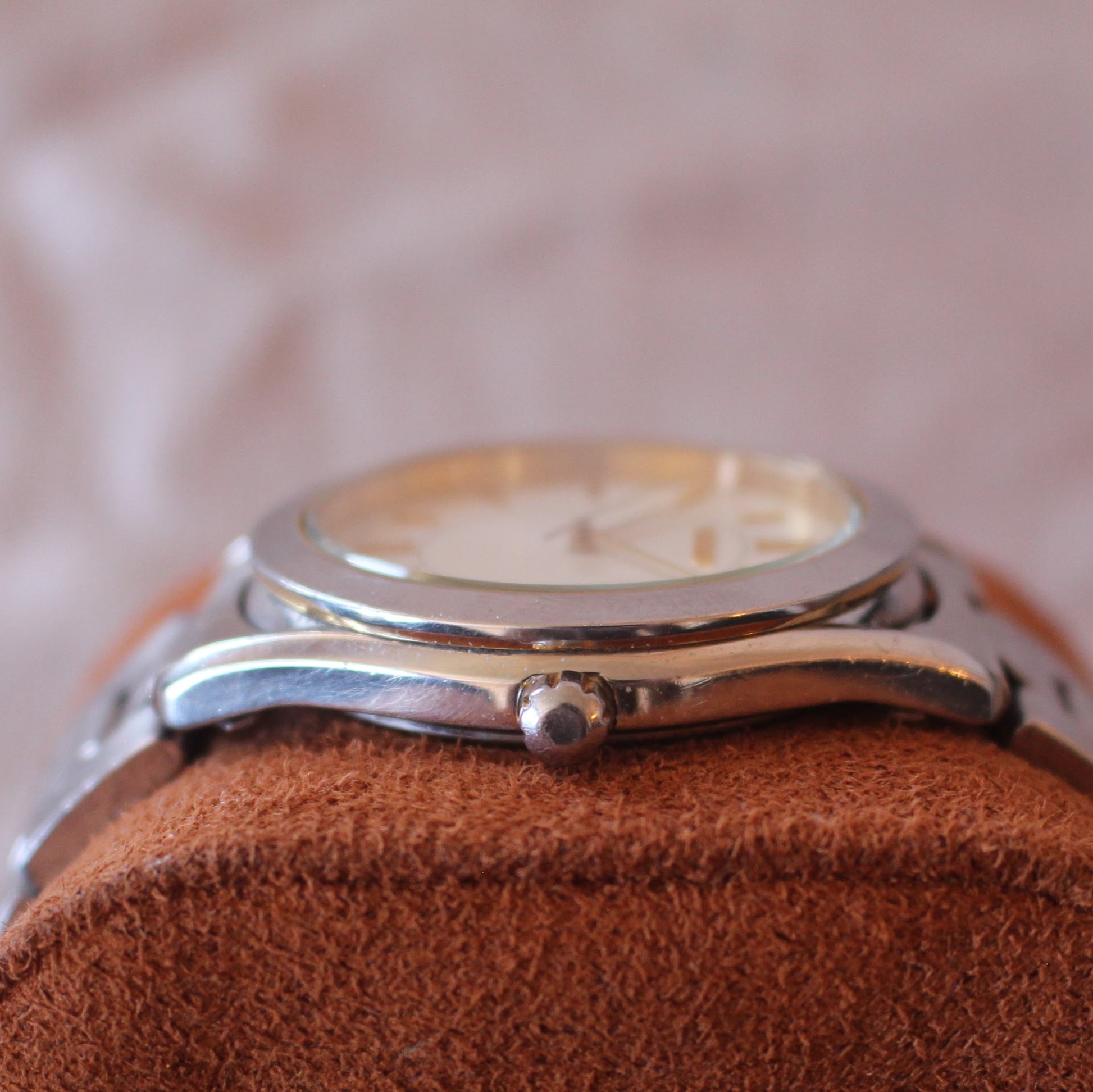 A great choice for fans of minimalist dress watches, two-tone accents, and classic Seiko quartz designs from the late 90s and early 2000s.