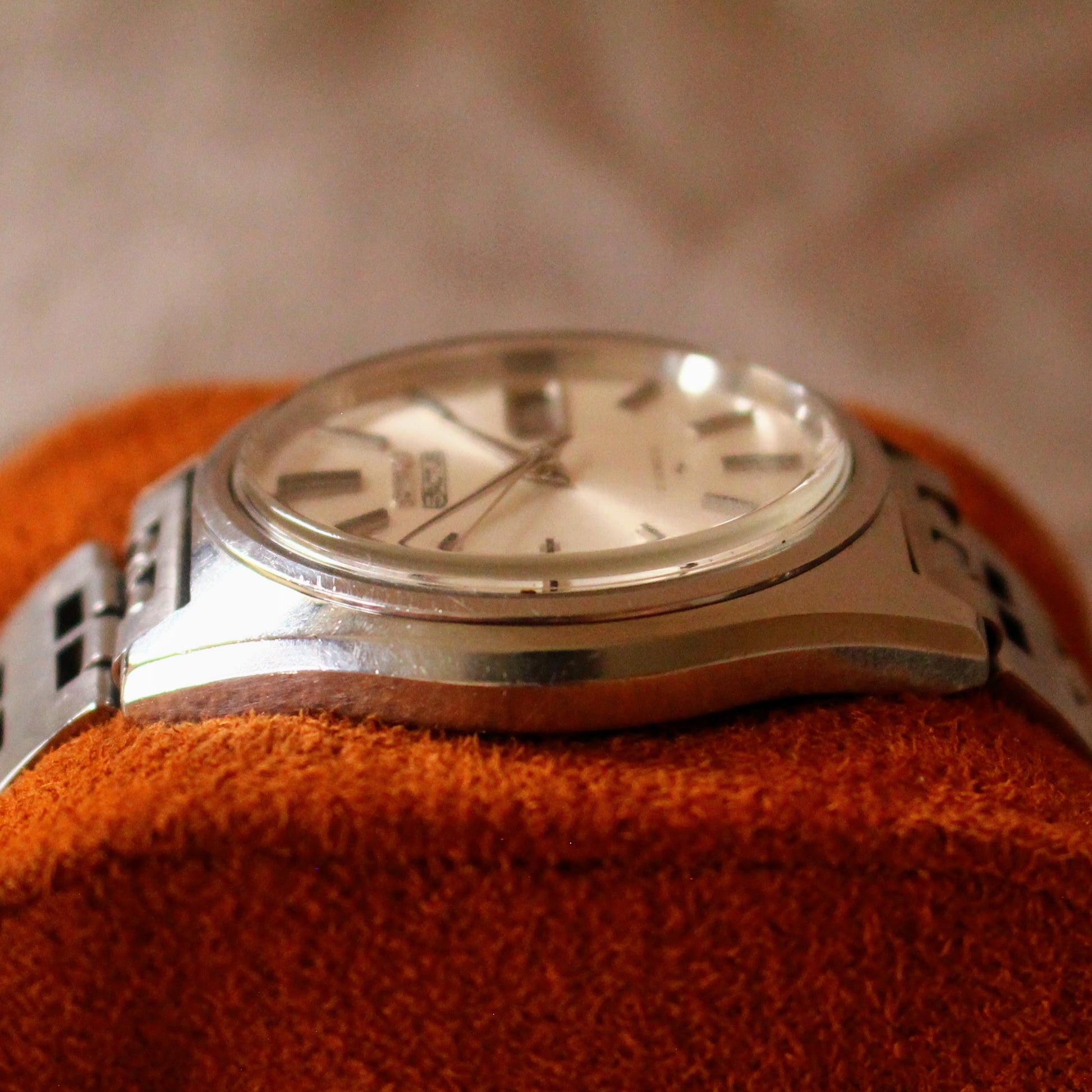 Offered in overall good vintage condition. The crystal is in good condition (acrylic so can be polished at home), and the dial is also in good shape with minimal signs of ageing. The case and the fitted bracelet show signs of light use, such as minor scratches and scuffs consistent with a well-cared-for watch from the 70s. Importantly, the watch is working and has been tested. After running overnight, it seems to be keeping decent time for a vintage automatic movement.