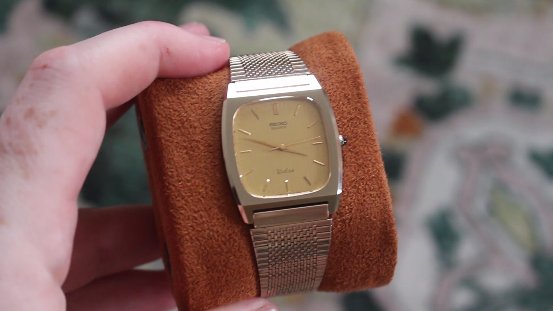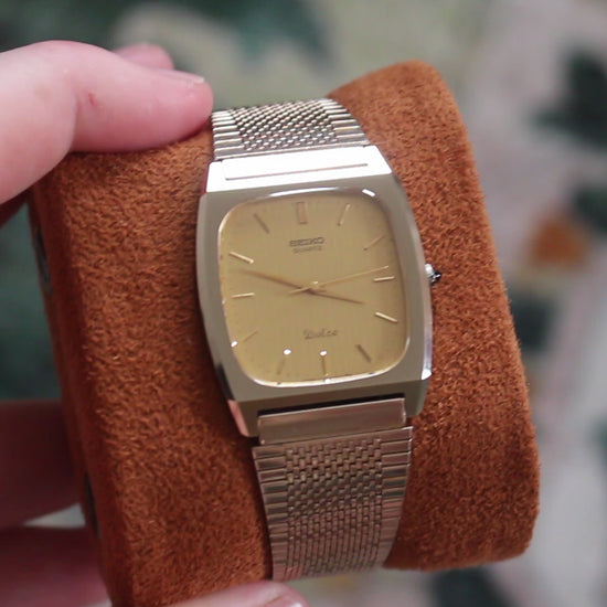 A stunning example of high-end 80s Seiko watchmaking, this Dolce offers a unique design, advanced scratch-resistant materials, and its original adjustable bracelet. A fantastic find for the discerning collector, offered in excellent working condition.
