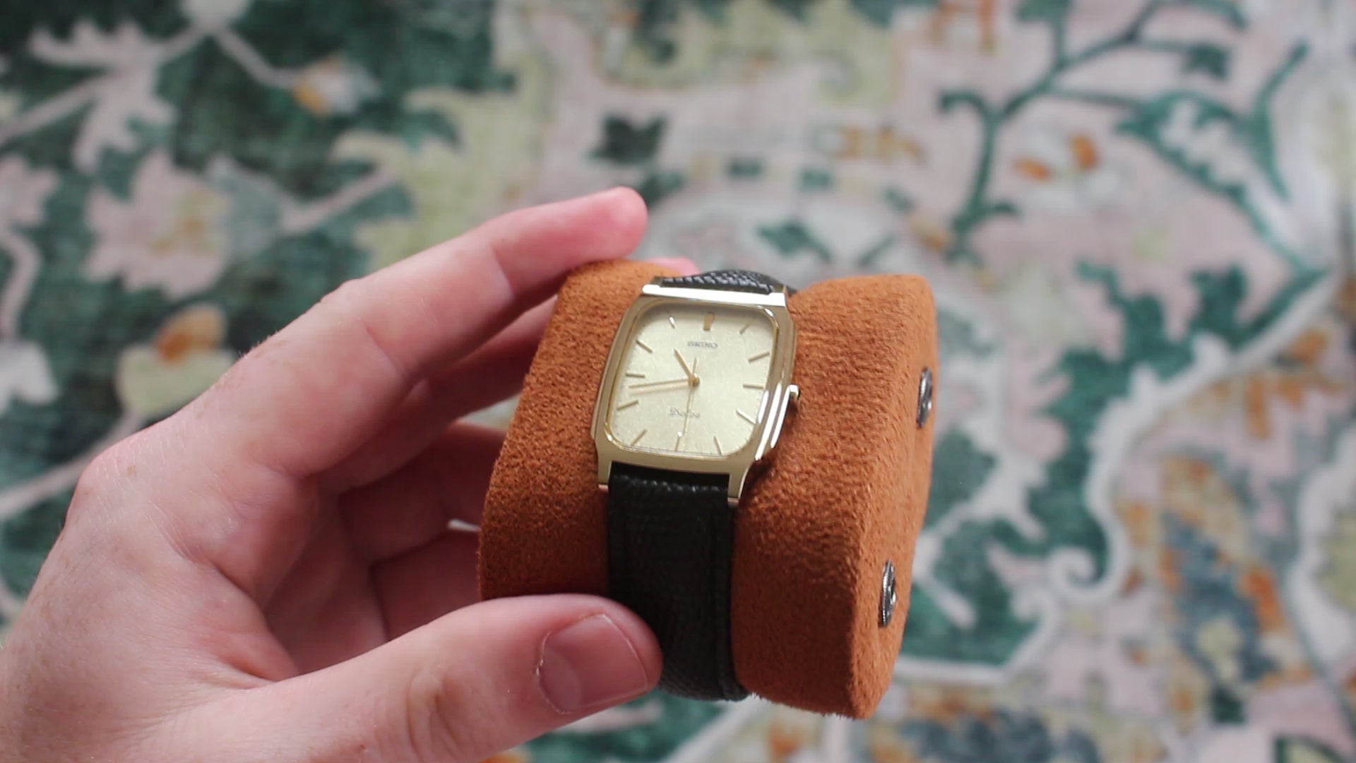 The watch presents in excellent condition overall, fitted with a brand new leather strap to complement the warmth of the dial and gold accents. A refined, understated vintage Seiko with real presence on the wrist.
