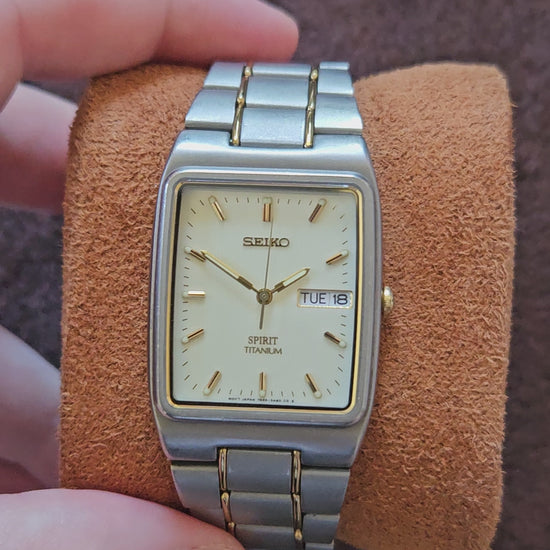 A beautifully preserved Seiko Spirit Titanium from the mid-1990s — a period when Seiko was pushing lightweight materials and refined dress styling into their Japanese domestic lineup. Spirit models from this era are loved by collectors for their comfort, clean design language, and long-term reliability.