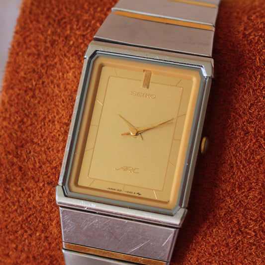 Vintage Seiko ARC Ultra Slim Gold Dial Dress Watch - 1221-5740 - 1985