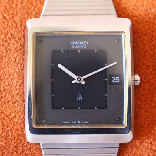 Vintage Seiko Square Black Dial Watch Original Band - 1988 - 7832-5050