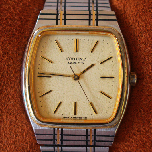 Vintage Orient Quartz Womens Dress Watch Two Tone Hatched Case - 80s